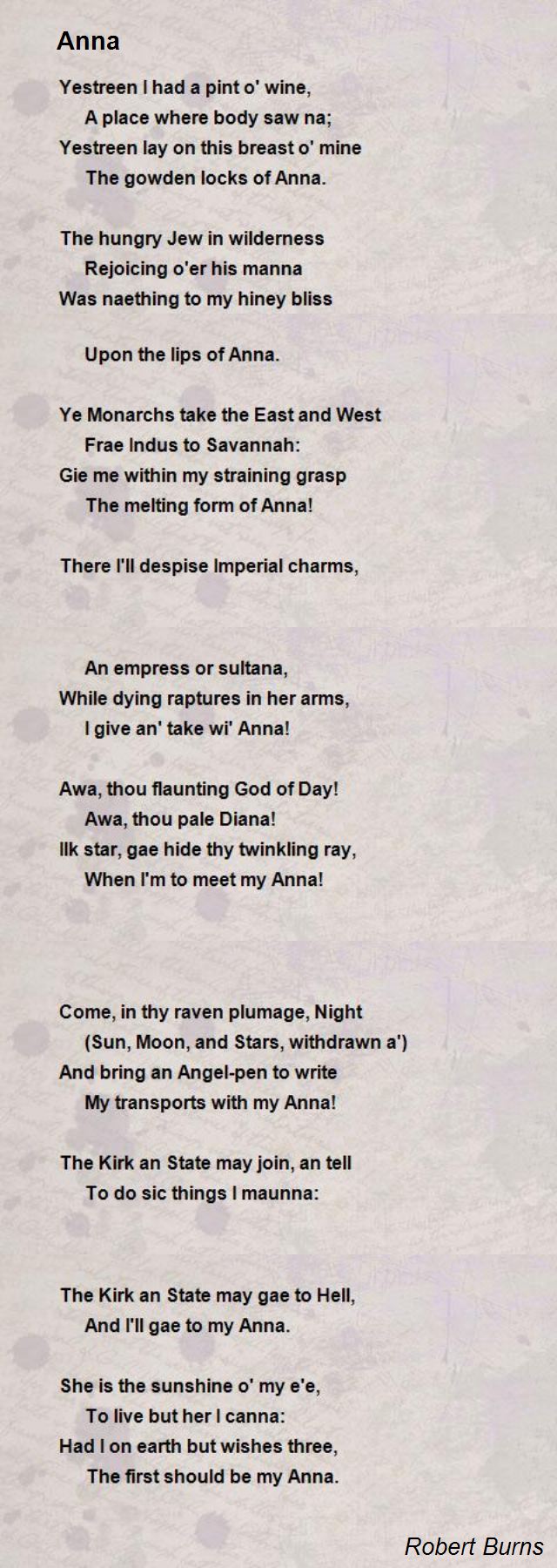 Anna Poem by Robert Burns - Poem Hunter from www.poemhunter.com Robert burns songs & poems. The list is ordered alphabatically. 42 видео 28 004 просмотра обновлен 24 мар. Includes a list of critical resources. Poems poem text robert burns: Read robert burns tam o'shanter. Robert burns poetry collection from famous poets and poems. Visit the robert burns birthplace museum.